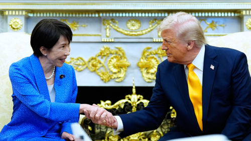 ▲ 트럼프 미국 대통령과 다카이치 일본 총리가 19일(현지시간) 미국 워싱턴 백악관 집무실에서 미일정상회담을 하고 있다.