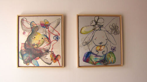 작가는 토끼의 그런 이중적 이미지를 한 화면에 중첩시킵니다.