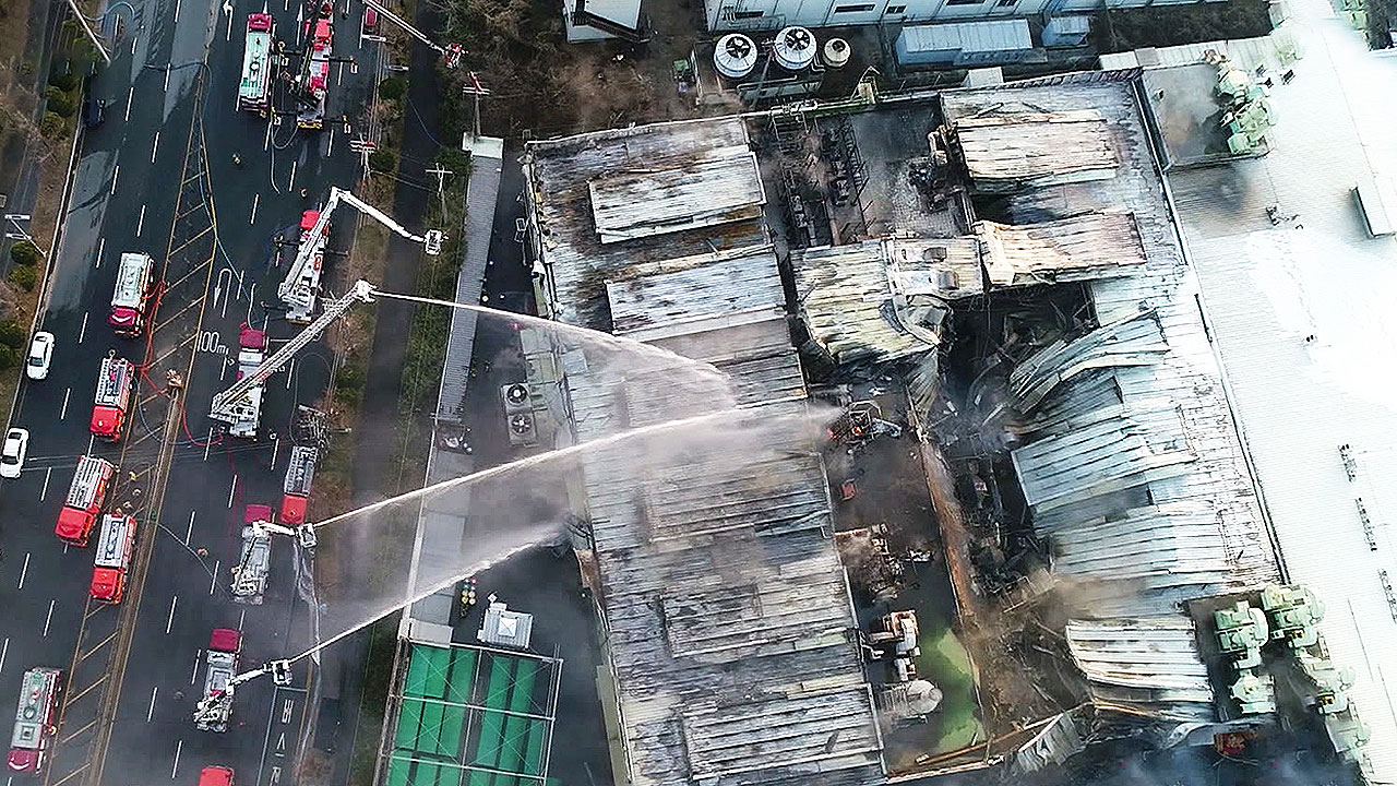 전문가 회의를 거쳐서 안전이 확인이 되면 그때 구조대를 신속히 투입하겠다고 했는데, 먼저 드론을 띄우고 로봇을 내부로 들여보낸 뒤에 사다리 차에 올라가서 공장 밖에서 내부를 수색하는 모습도 포착이 됐습니다.