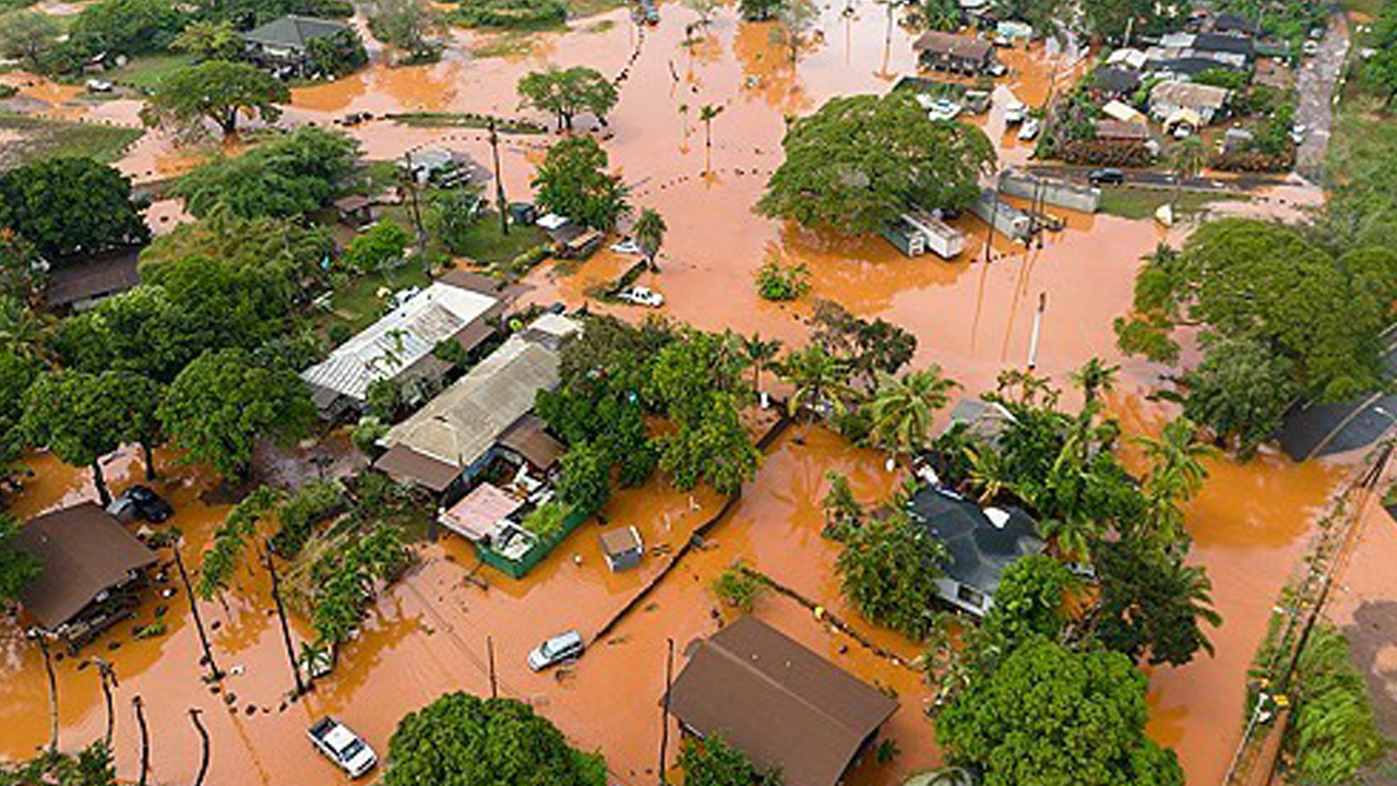 ▲ 폭우로 침수된 하와이 오아후섬 와이알루아 지역