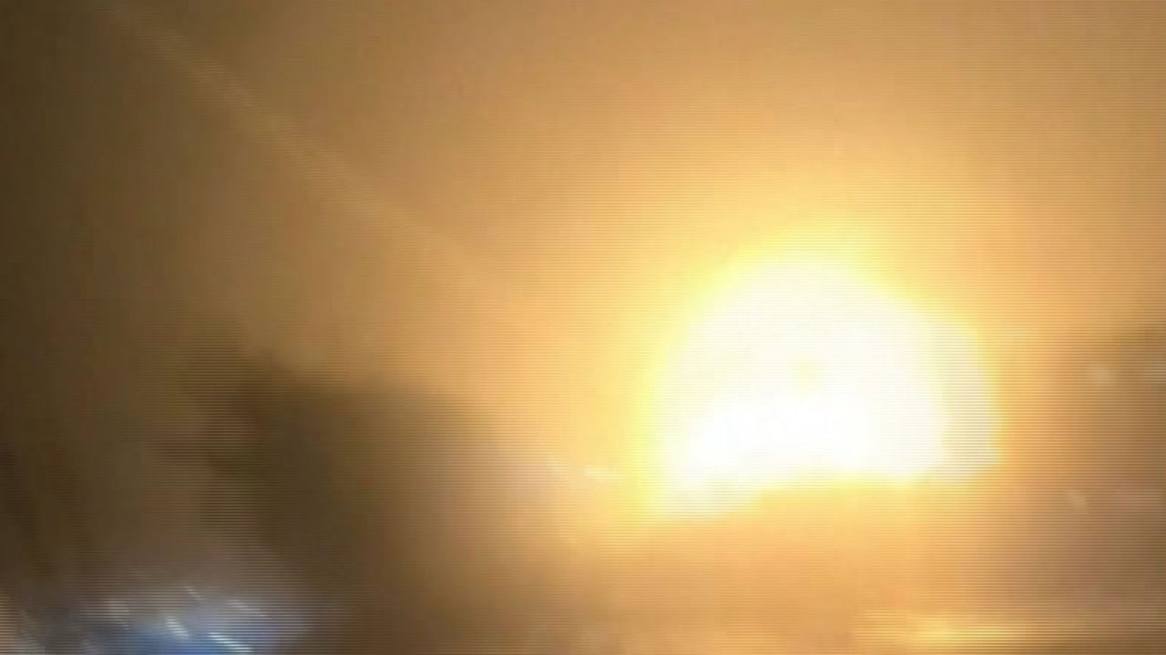 현지 시간 21일 저녁, 이스라엘 남부 도시 디모나에 미사일이 날아온 뒤 화염이 솟구칩니다.