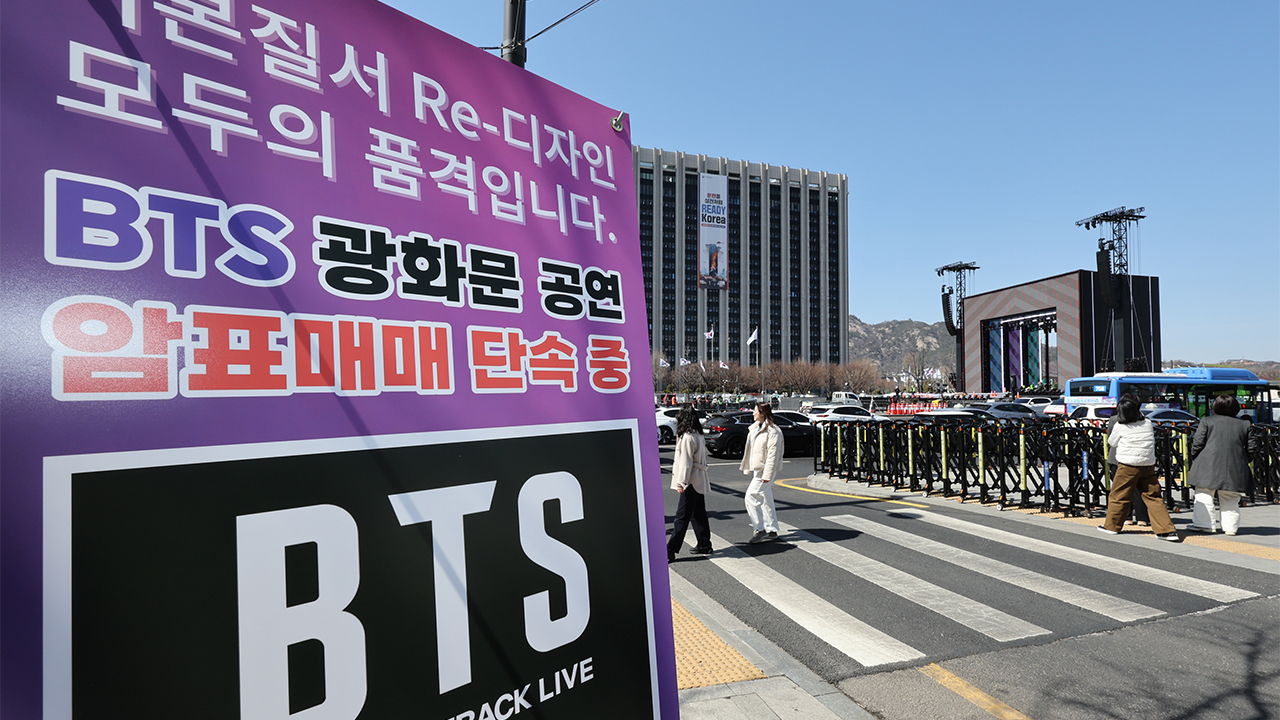 ▲ 그룹 방탄소년단(BTS)의 광화문 공연을 앞둔 19일 서울 종로구 광화문광장 부근에 암표 단속 안내문이 설치돼 있다.