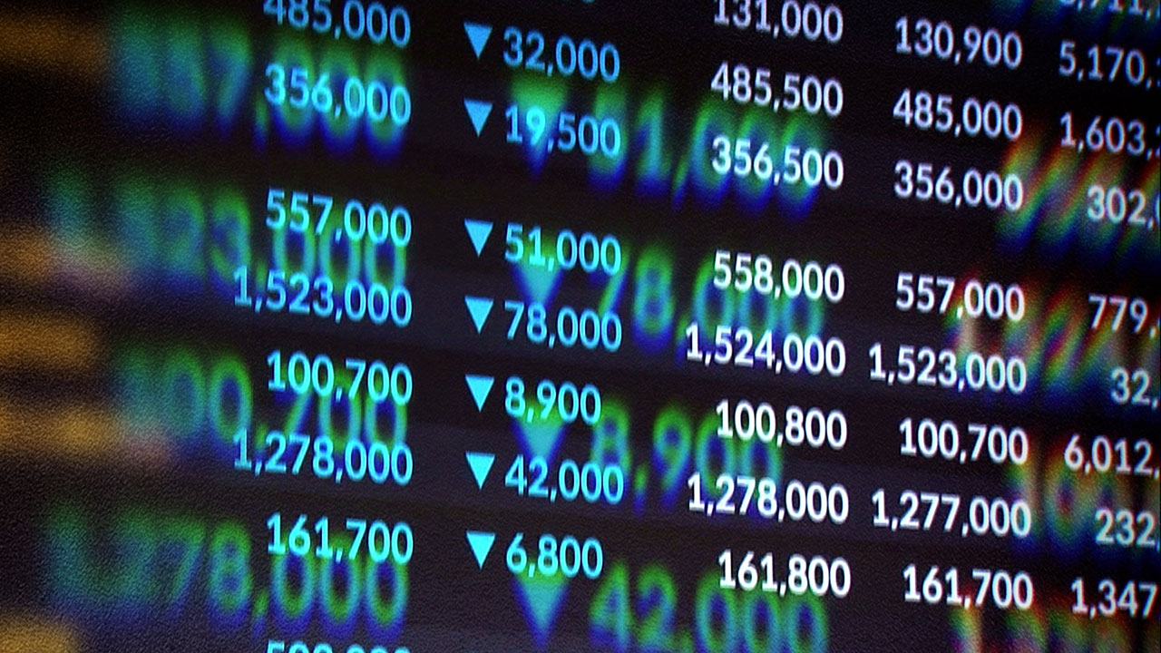 한국거래소 전광판이 주가 하락을 뜻하는 파란색으로 물들었습니다.