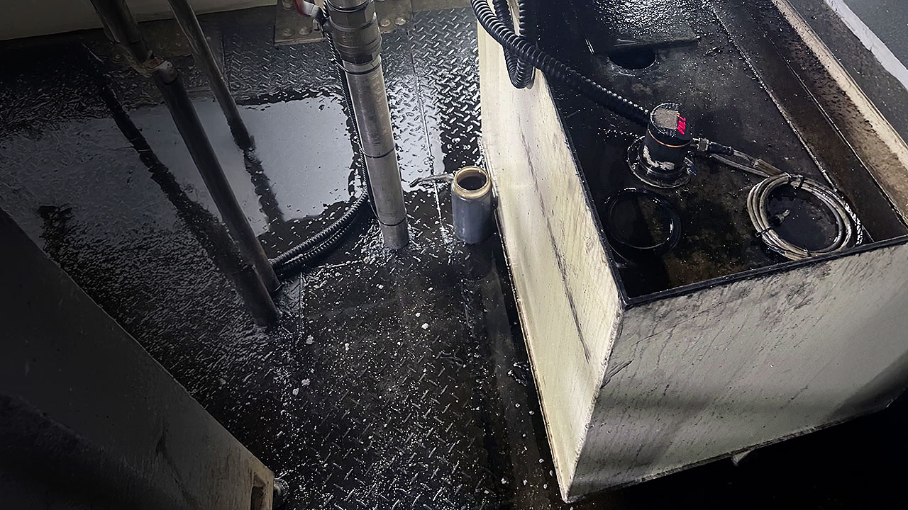 금속을 가공할 때 사용하는 기름인 절삭유 유증기가 꽉 들어찬 모습입니다.