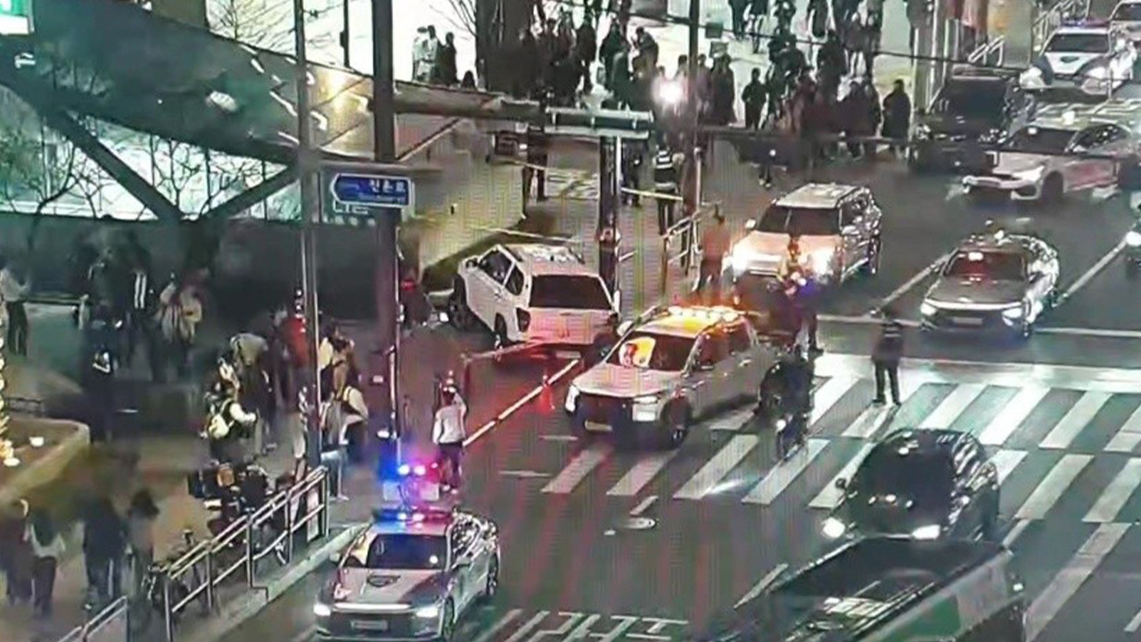 오늘(23일) 저녁 7시 10분쯤 서울 마포구 지하철 홍대입구역 4번 출구 인근에서 흰색 차량이 인도로 돌진했습니다.