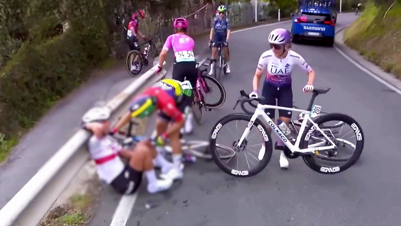 혼란 속에 한 선수가 가드레일을 넘어 도로 아래로 추락하는 상황까지 벌어졌는데요.