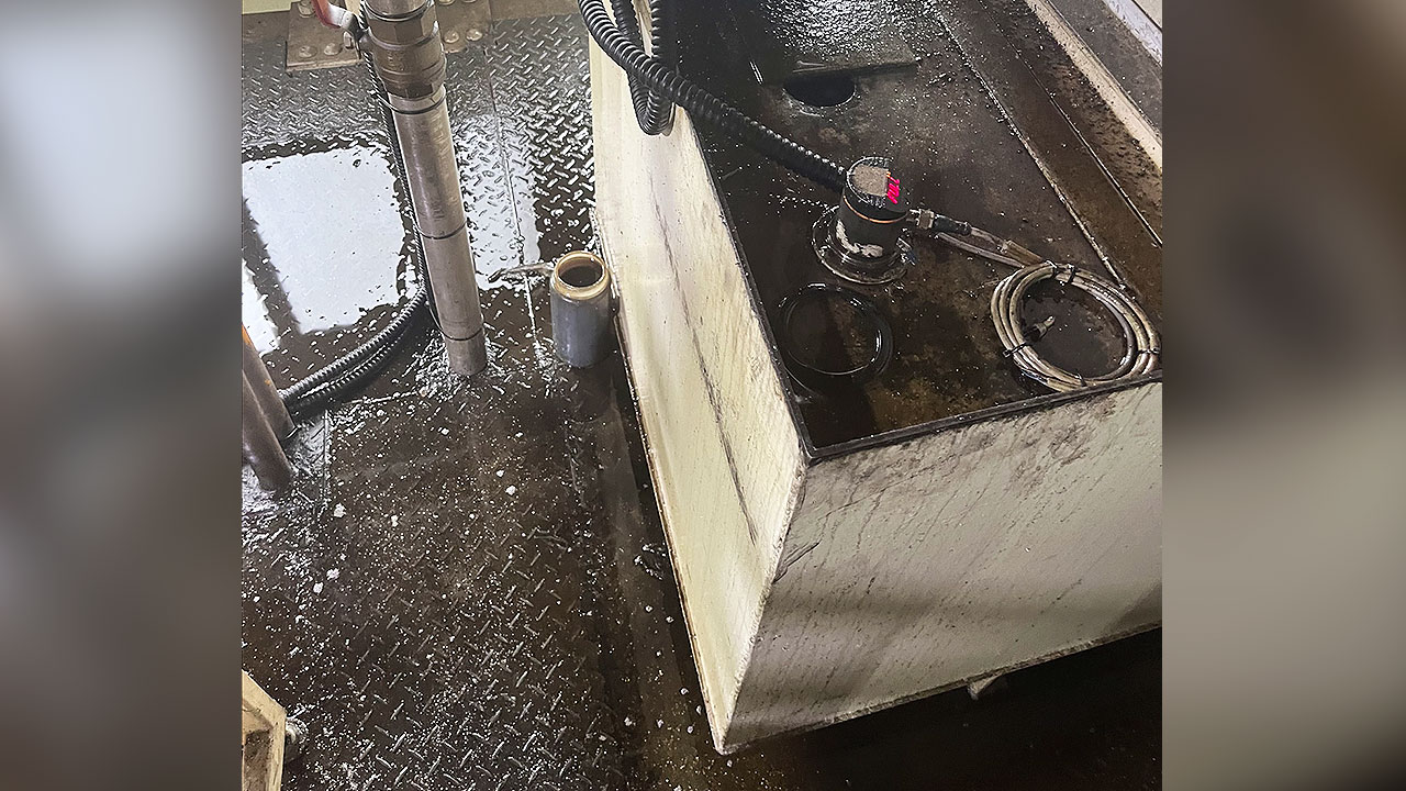 금속을 가공할 때 사용하는 기름인 절삭유 유증기가 꽉 들어찬 모습입니다.
