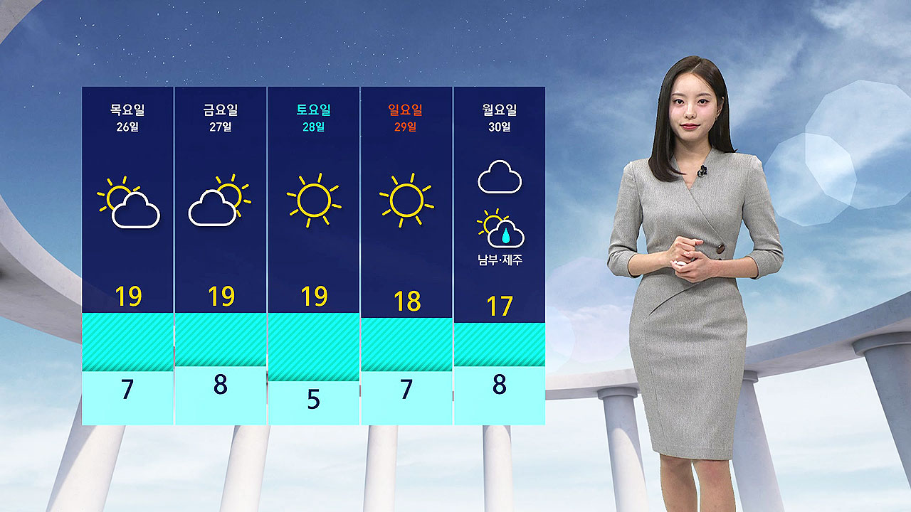 한낮에 서울이 19도, 광주 18도 반면 부산은 14도에 그치겠습니다.
