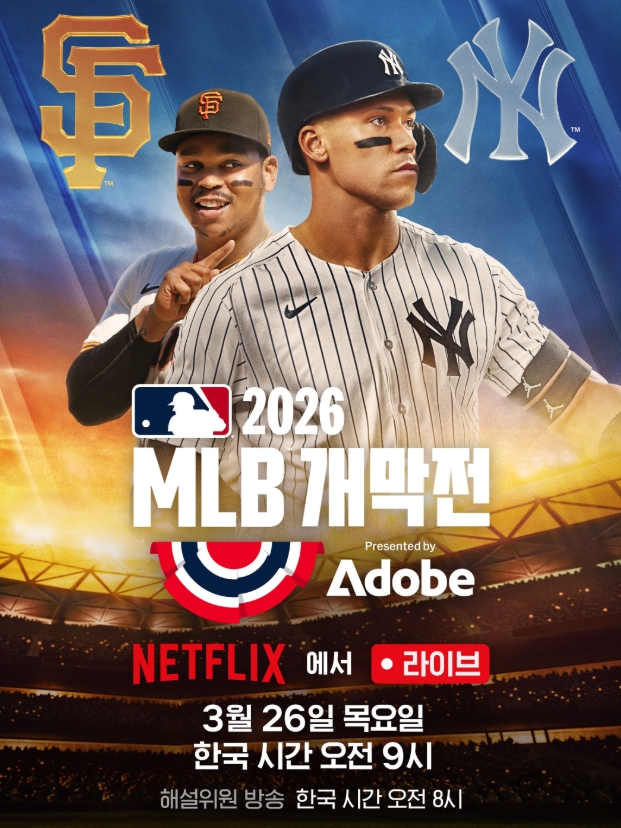 넷플릭스가 오는 26일(목) 오전 9시(한국 시간), 미국 캘리포니아 샌프란시스코 오라클 파크에서 열리는 뉴욕 양키스와 샌프란시스코 자이언츠의 2026 MLB 개막전을 생중계한다.