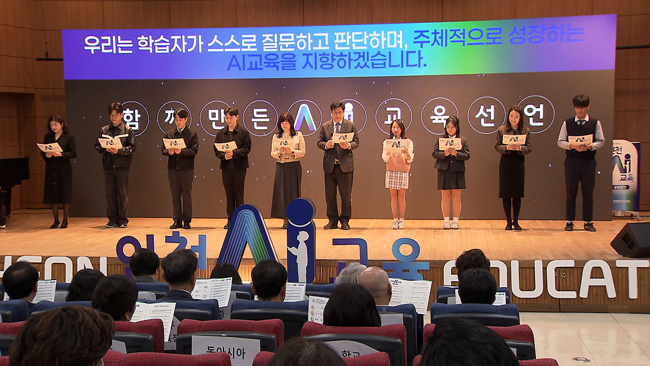 인천광역시교육청이 어제(24일) 오후 시 교육청 대강당에서 학생과 교사, 교육 전문직 등 500여 명이 참석한 가운데, 인공지능 시대에 필요한 교육적 가치와 방향을 담은 인천 AI 교육 공동선언'을 발표했습니다.