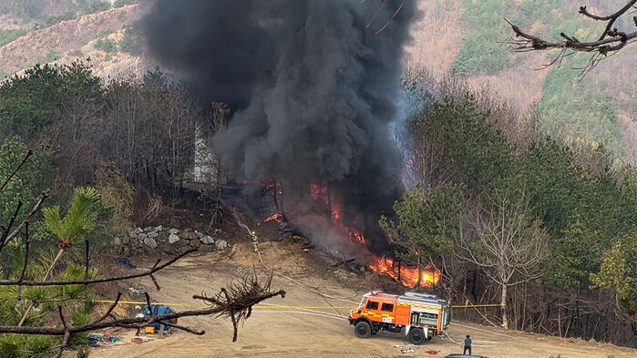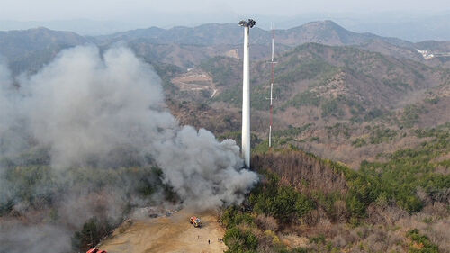 소방 관계자는 블레이드 추락 후 발생한 화재와 관련, "미리 소방차가 대기하고 있었고, 초기 진화를 마쳐서 산불이 확대할 우려는 없다"고 전했습니다.