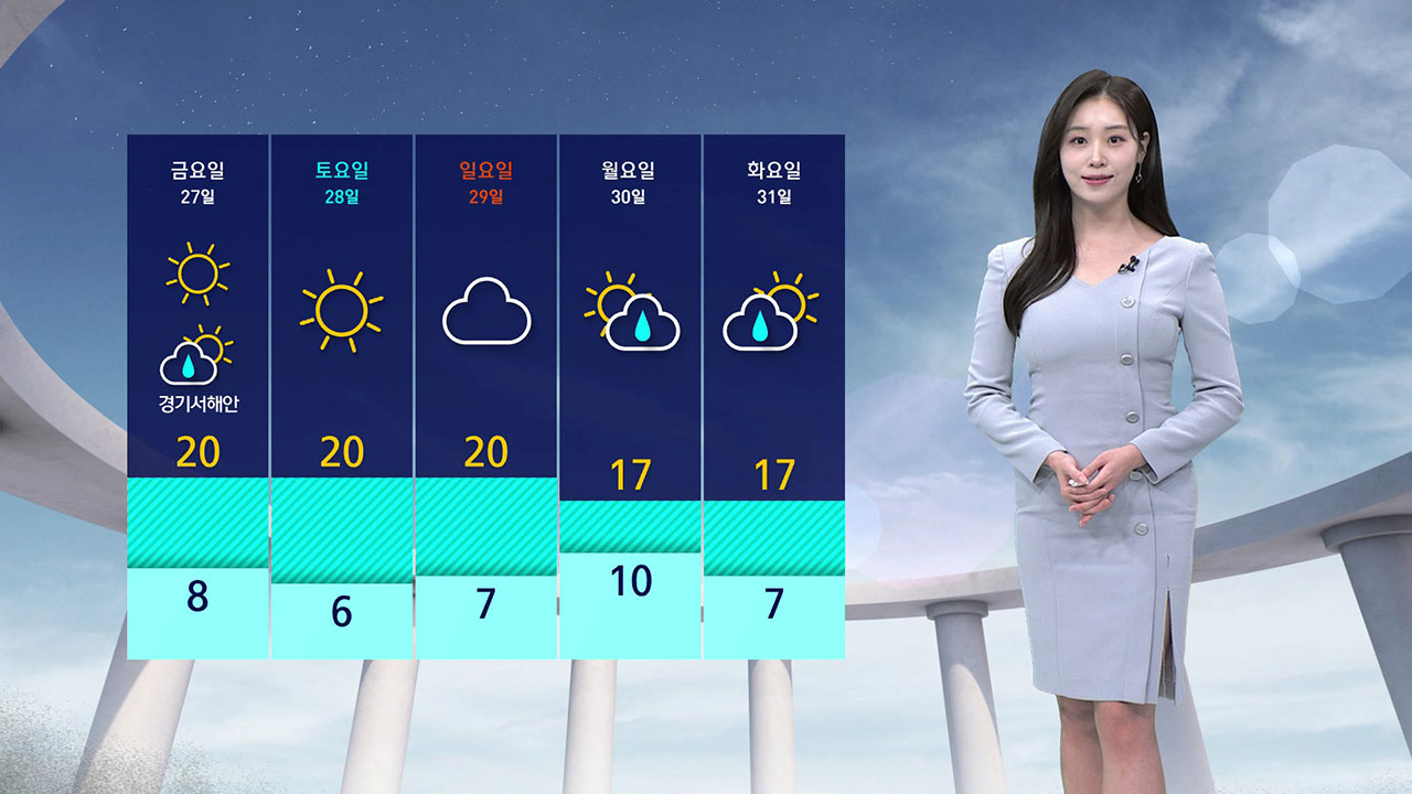 낮 최고 기온은 서울 20도, 대구 23도, 광주는 22도까지 오르면서 4월 말에서 5월 초에 해당하는 기온이 나타나겠습니다.