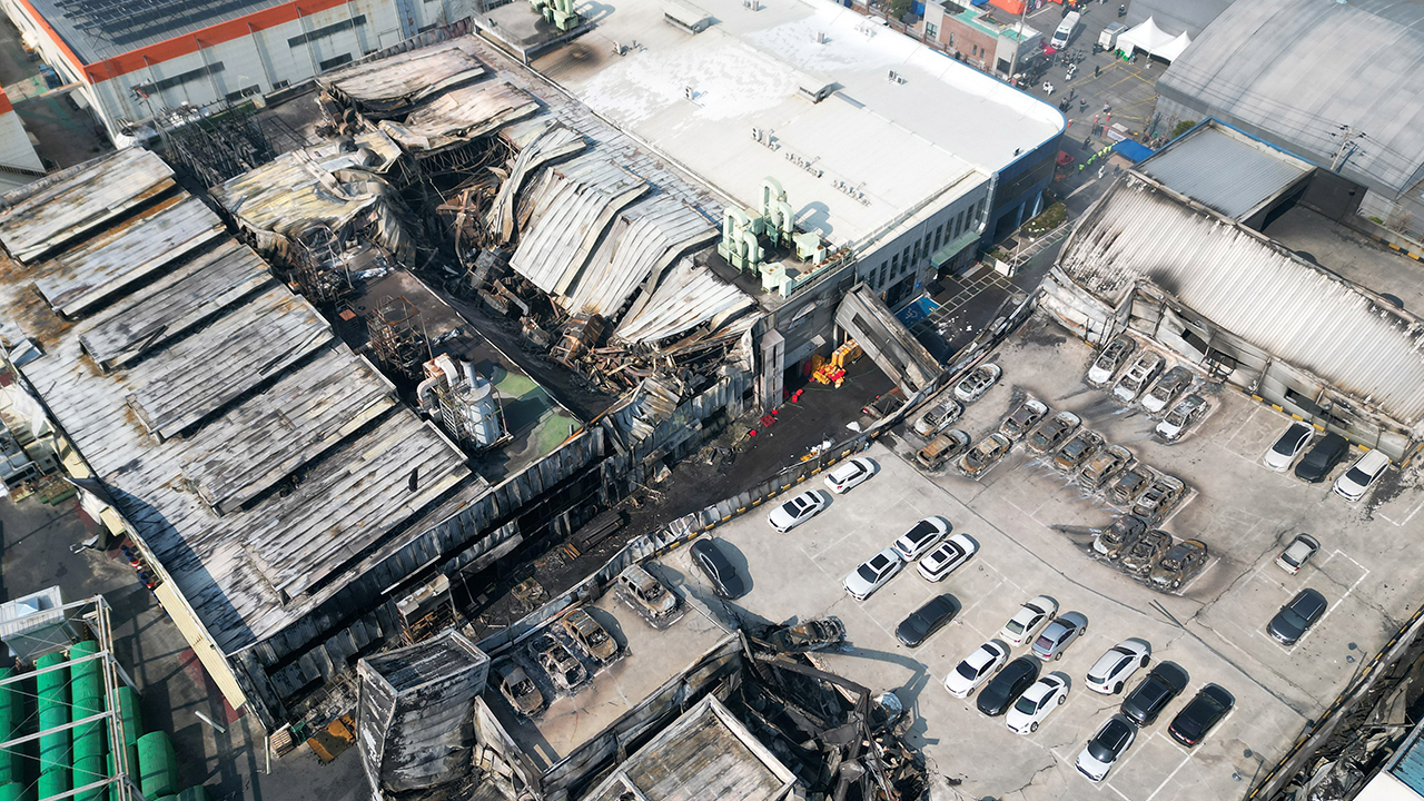 ▲ 대형 화재가 발생한 대전 대덕구 안전공업 외관을 지난 21일 오전 하늘에서 바라본 모습