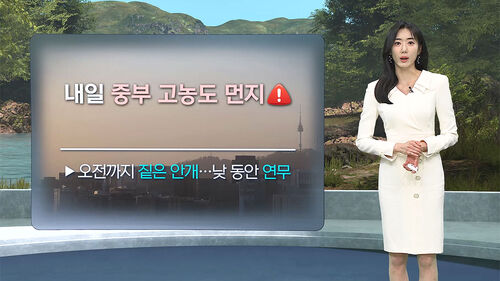 내일은 중부를 중심으로 고농도 먼지가 나타나겠고, 오전까지 서쪽 지역은 안개도 짙게 끼겠습니다.