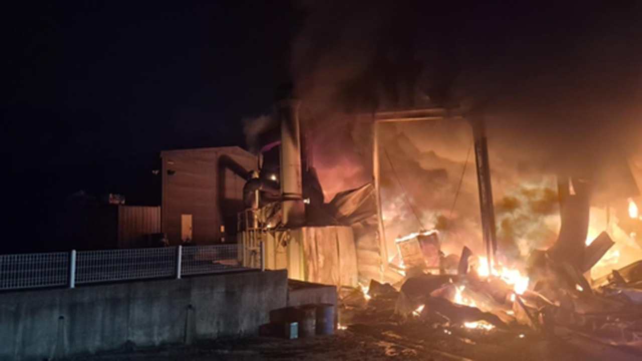 ▲ 26일 오후 8시 13분쯤 충북 음성군 금왕읍의 한 필름 제조 공장에서 화재가 발생했다.