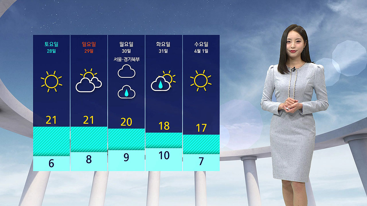 한낮에는 일사가 기온을 끌어올리며 20도를 웃돌겠습니다.