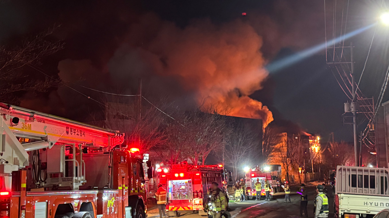 27일 소방 당국에 따르면 전날 오후 8시 43분께 동구 방촌동 조명 공장에서 원인이 밝혀지지 않은 화재가 발생했습니다.