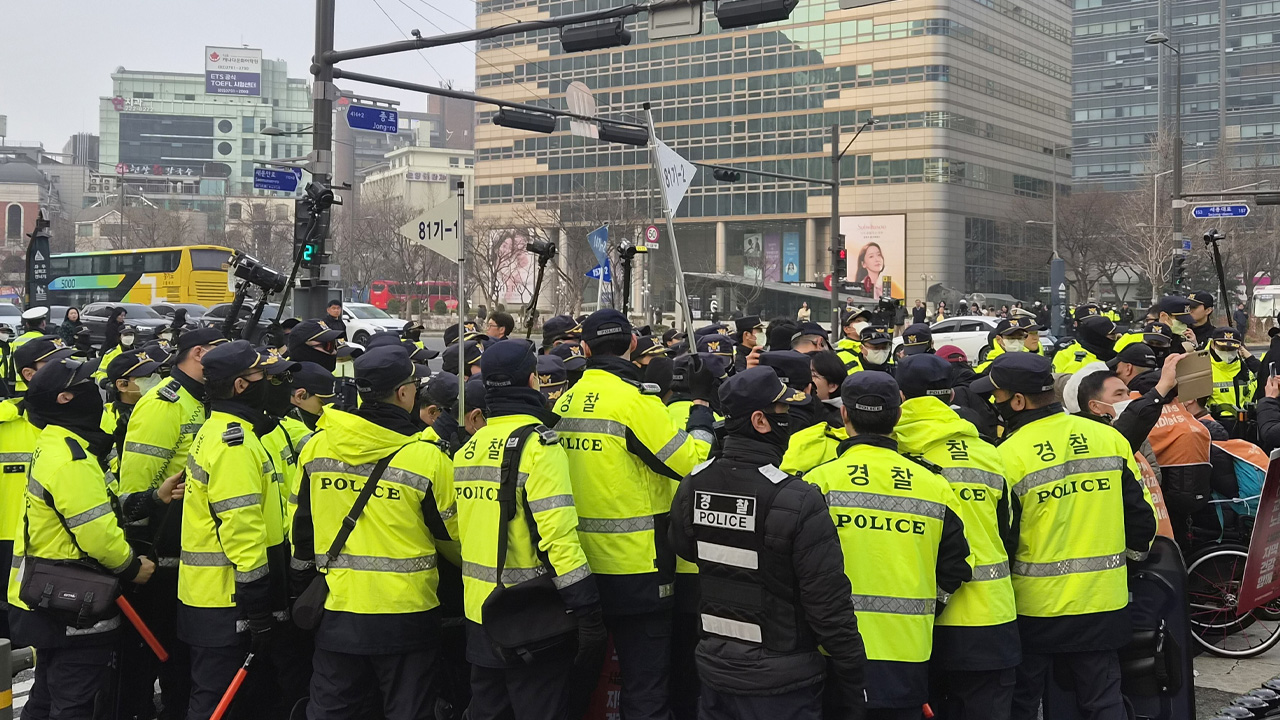 전장연 소속 활동가 20여명은 이날 오전 8시 10분께 광화문역 사거리 세종대로 서대문 방향 버스정류장에서 휠체어를 탄 채 버스 탑승을 시도하다가 경찰과 충돌한 뒤 대치 중입니다.