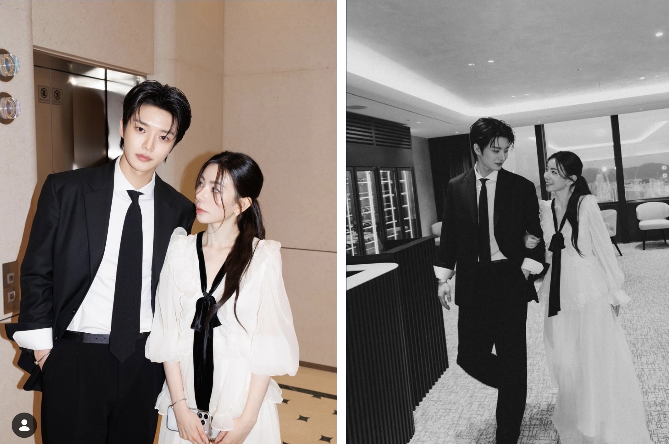 In photos Ji-yeon recently posted on social media, the two link arms affectionately. The black-and-white vibe and their outfits make it look straight out of a wedding editorial.