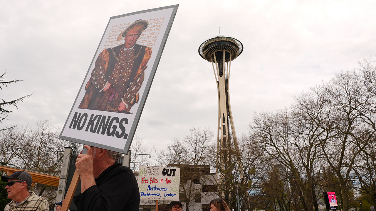 ▲ 현지시간 28일 미국 시에틀에서 열린 반 트럼프 시위 '노 킹스' 시위