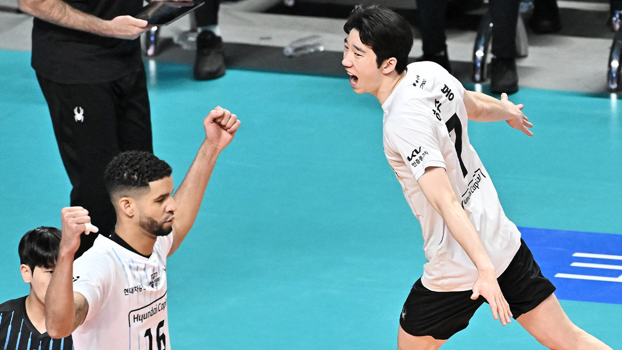 현대캐피탈은 오늘(29일) 서울 장충체육관에서 열린 진에어 2025-2026 V리그 우리카드와 PO 2차전에서 세트 점수 3-2(22-25 22-25 25-18 41-39 15-12)로 짜릿한 역전승을 거뒀습니다.