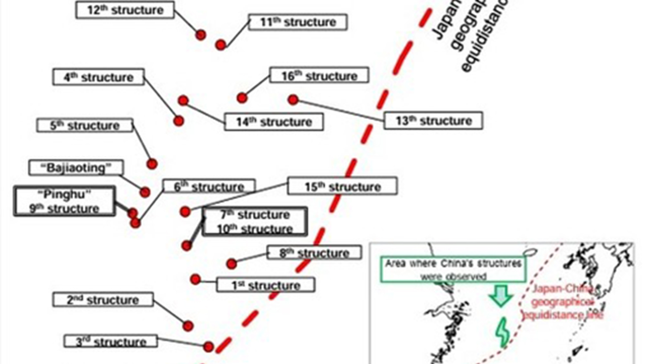 ▲ 중일 중간선 서쪽서 확인된 중국 측 구조물