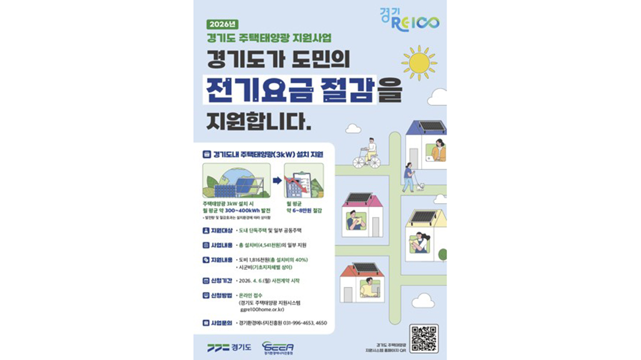 참여를 희망하는 도민은 '경기도 주택태양광 지원시스템' 누리집(www.ggre100home.or.kr)에 접속해 회원가입 후 시공기업을 선택해서 신청하면 됩니다.
