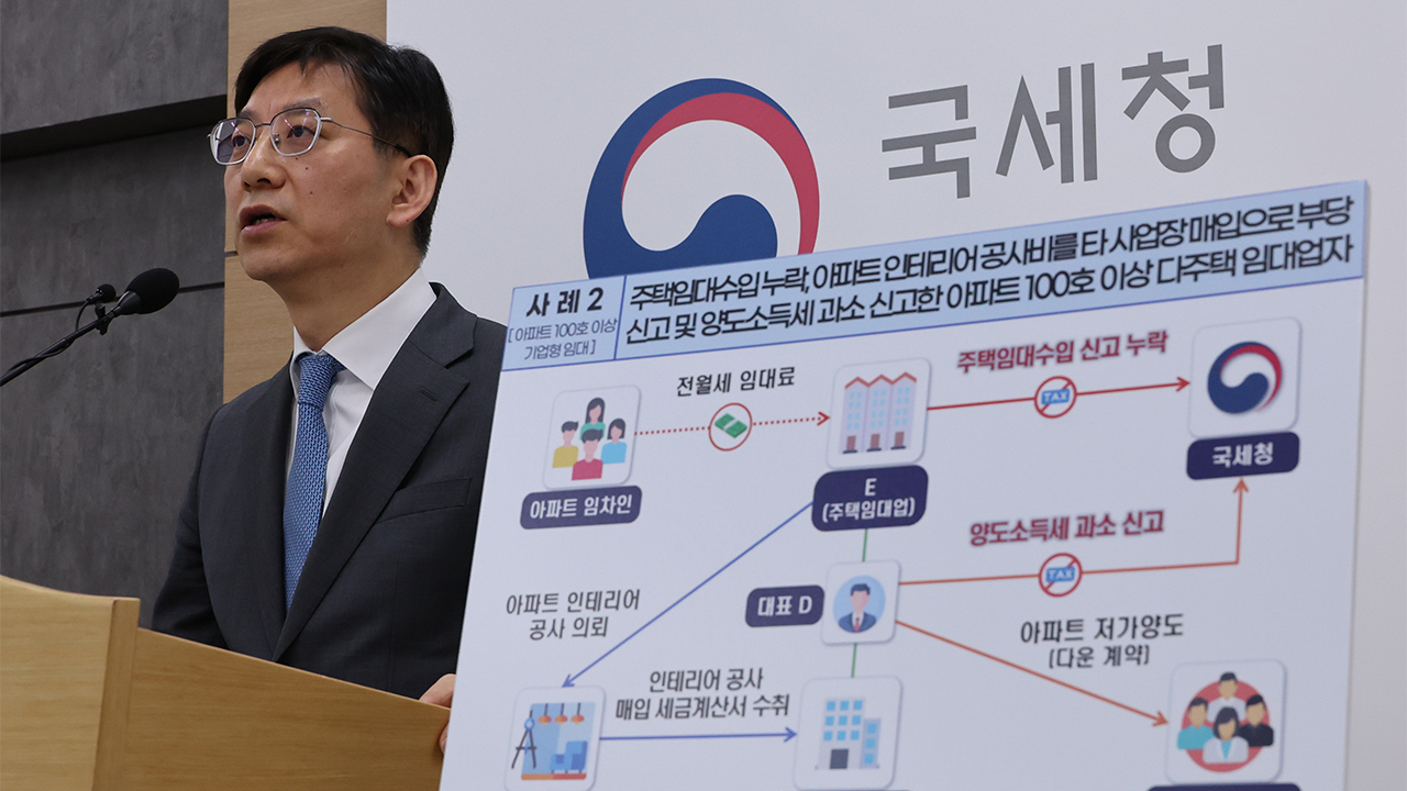 국세청 안덕수 조사국장은 "다양한 세제 혜택으로 세금 경감을 받으면서도 변칙적인 방법으로 세 부담을 회피해 탈세한 다주택 임대업자를 지속적으로 검증하겠다"고 말했습니다.