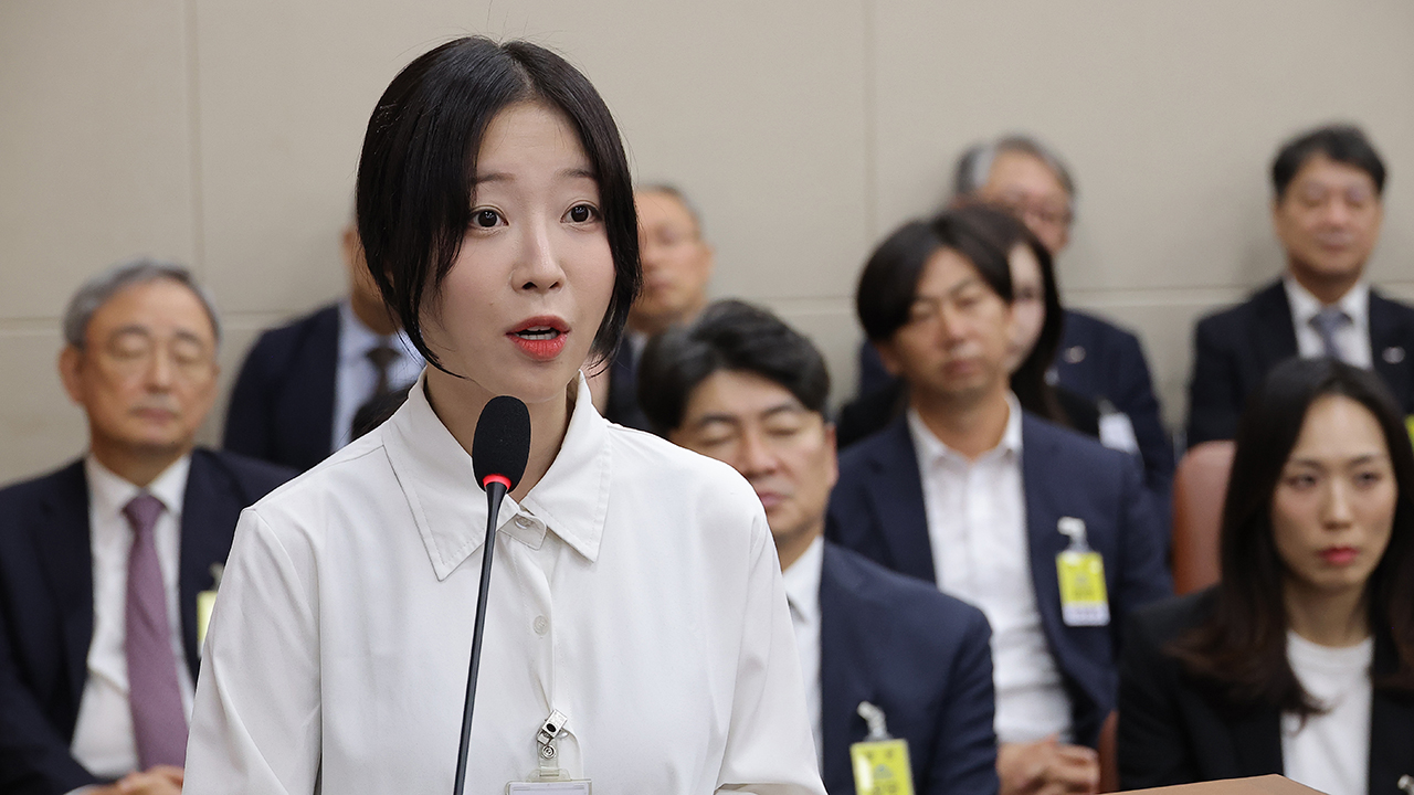 ▲ 유튜버 쯔양(본명 박정원)이 지난해 10월 14일 서울 여의도 국회 과학기술정보방송통신위원회에서 열린 2025년도 국정감사에서 의원 질의에 답변하고 있다