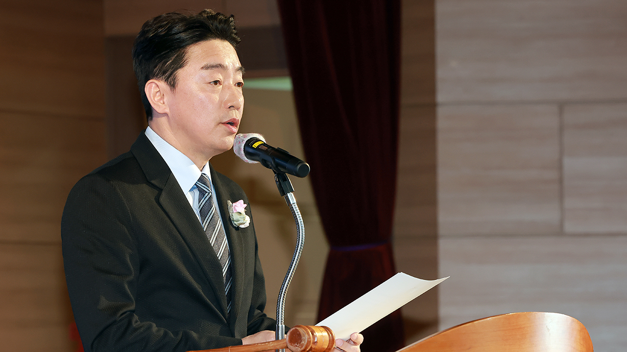 ▲ 강훈식 대통령 비서실장이 지난 29일 서울 강서구 대한한의사협회에서 열린 제70회 정기대의원총회에 참석해 이재명 대통령 축사를 대독하고 있다.