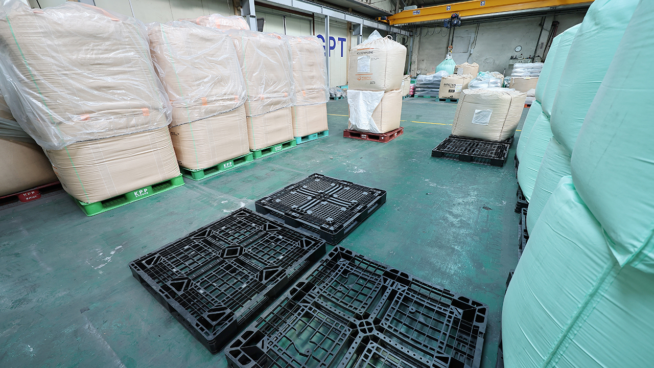 ▲ 지난 24일 경기 안산시의 한 플라스틱 필름 제조 공장 내 폴리에틸렌 등 원료가 쌓여 있어야 할 원료창고가 듬성듬성 비어있다