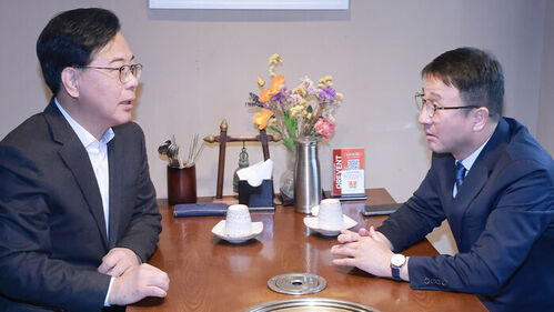 ▲ 더불어민주당 한병도 원내대표와 국민의힘 송언석 원내대표가 30일 서울 영등포구청역 인근 식당에서 오찬 회동을 하고 있다