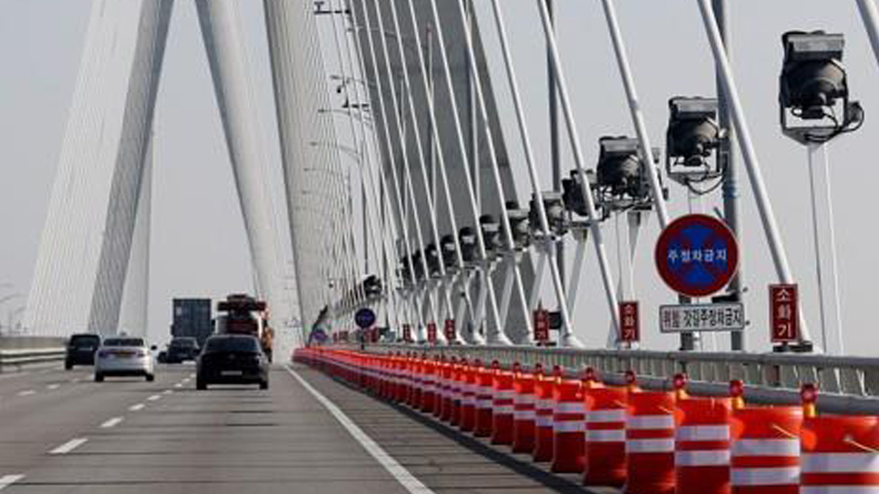 ▲ 인천대교 갓길에 설치된 드럼통