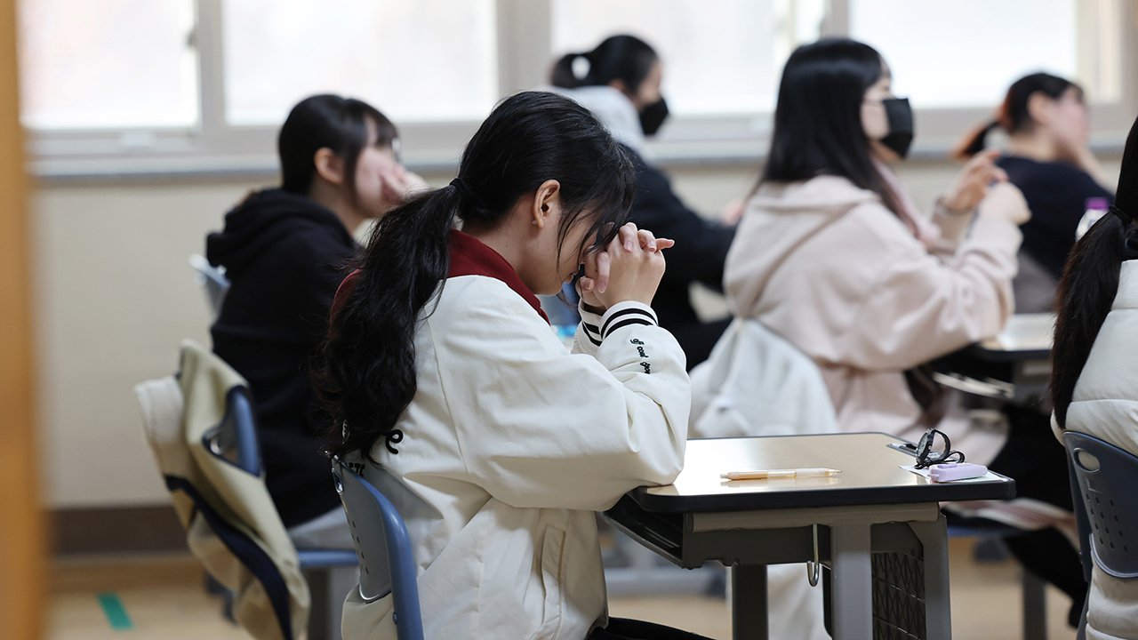 ▲ 2026학년도 대학수학능력시험(수능)이 실시된 지난해 11월 13일 오전 인천 미추홀구 인화여자고등학교에서 수험생들이 시험 시작을 기다리고 있다.