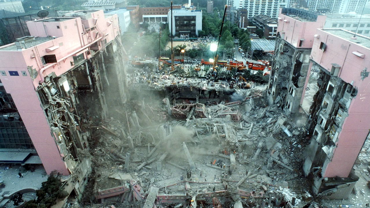 ▲ 중간 부분이 푹 꺼져버린 삼풍백화점 붕괴 현장