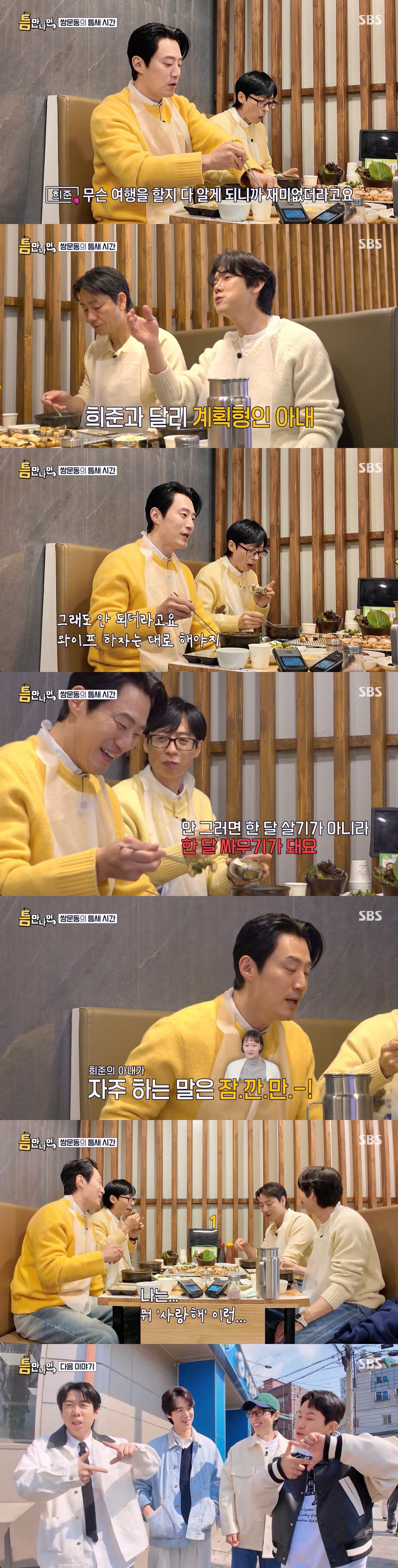 그러자 이희준은 "나는 여행을 할 때도 즉흥적이다. 계획을 세우고 여행을 하면 재미가 없다. 얼마 전에 제주 한 달 살기를 했는데 계획형인 아내는 계획을 세우고 싶은데 나는 그냥 가자고 했다. 그런데 그게 아내는 답답한가 보더라. 근데 결국 안 되더라. 와이프가 하자는 대로 해야 한다"라고 했다.
