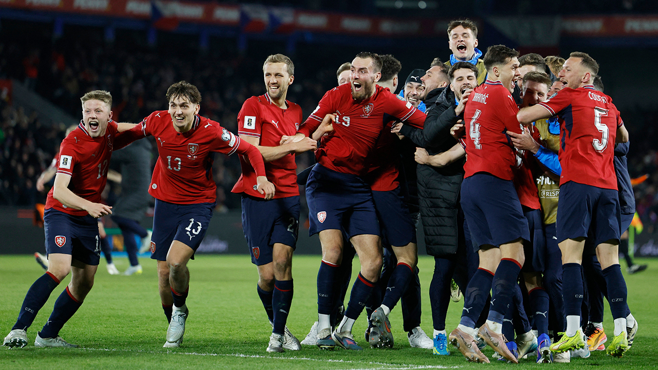 체코(FIFA 랭킹 43위)는 오늘 체코 프라하의 에페트 아레나에서 열린 북중미 월드컵 유럽축구연맹(UEFA) 플레이오프(PO) D조 결승에서 덴마크(20위)와 전·후반 90분을 1대 1, 연장전까지는 2대 2로 맞선 뒤 승부차기에서 3대 1로 이겼습니다.