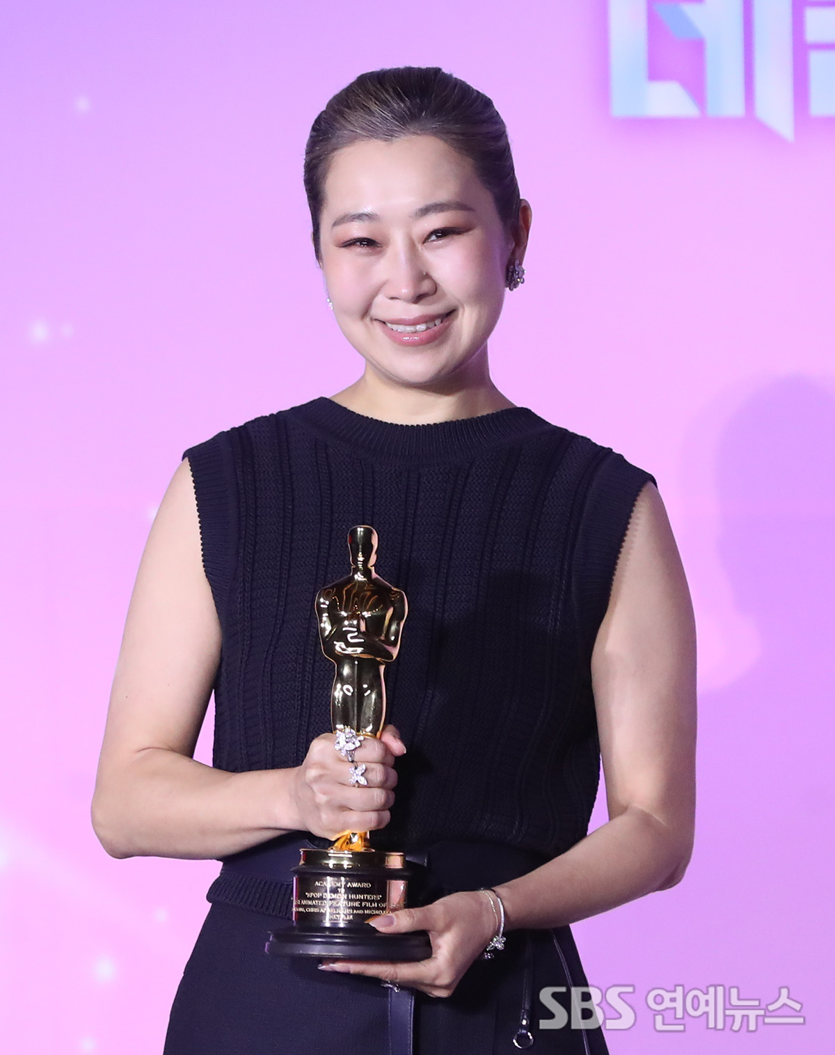 Director Maggie Kang attends the KPop Demon Hunters Academy Award celebration press conference at CGV Yongsan I’Park Mall in Yongsan-gu, Seoul, on the afternoon of the 1st and poses for photos.