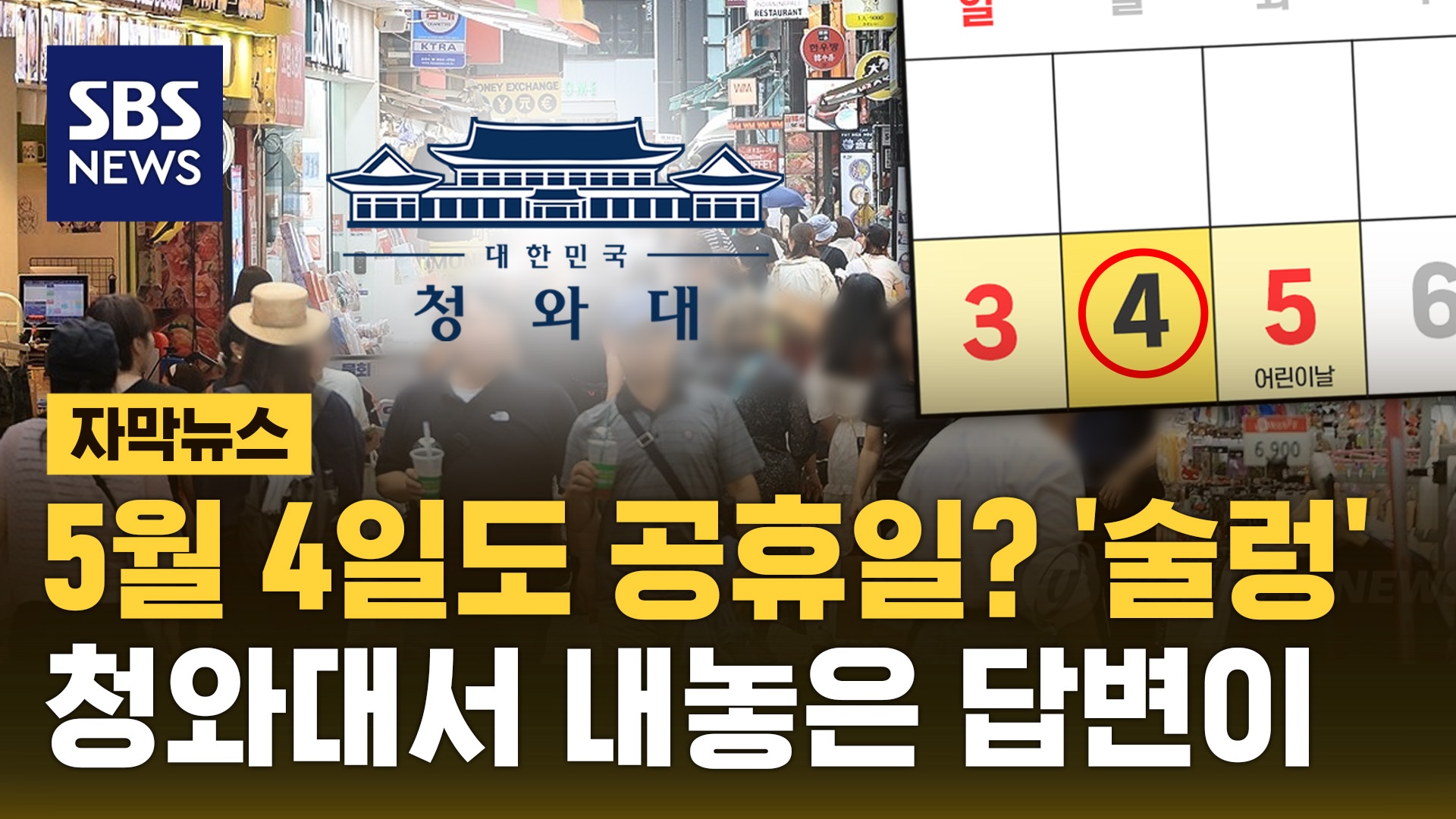 하지만 청와대 관계자는 오늘 언론 공지를 통해 "5월 4일 임시공휴일 지정은 사실무근이며 검토된 바 없다"고 일축했습니다.