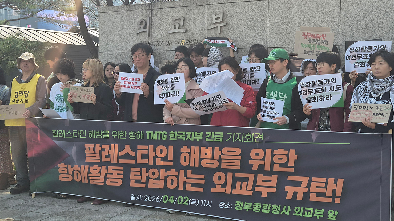 가자지구에 구호물품을 전달하는 등의 목적으로 구성된 '가자로 향하는 천 개의 매들린호'(TMTG) 한국지부'는 오늘(2일) 오전 서울 종로구 외교부 청사 앞에서 기자회견을 열고 정부가 '팔레스타인 해방을 위한 항해 활동을 탄압하고 있다'며 규탄한다는 입장을 발표했습니다.