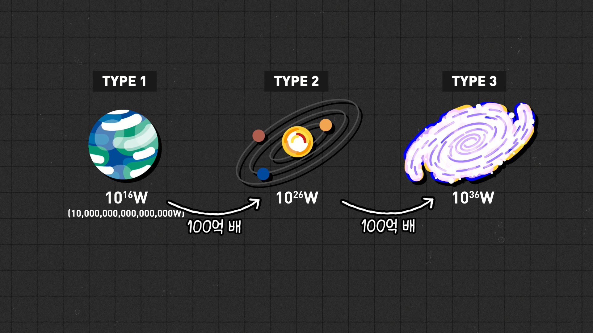 카르다쇼프는 행성 차원의 에너지를 사용하는 문명은 타입 Ⅰ 태양 같은 항성급의 에너지를 사용하는 문명은 타입 Ⅱ 은하급의 에너지를 사용하는 문명은 타입 Ⅲ로 구분했습니다. 하지만 이 기준대로라면 행성이 어느 항성 주위를 돌고 있고, 어느 은하에 속해 있느냐에 따라 단계별 기준치가 달라질 수 있죠.