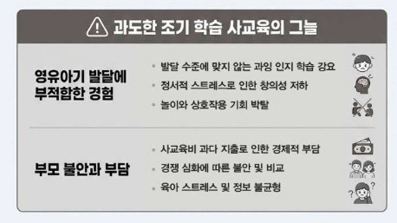 최교진 교육부 장관은 '영유아 사교육 대응 방안'과 관련해 "아이들의 건강한 성장을 가로막고 있는 과도한 영유아 사교육 문제를 해결하고 아이들의 발달권을 온전히 보장하기 위해 정책적 결단을 내린 것"이라고 밝혔습니다.