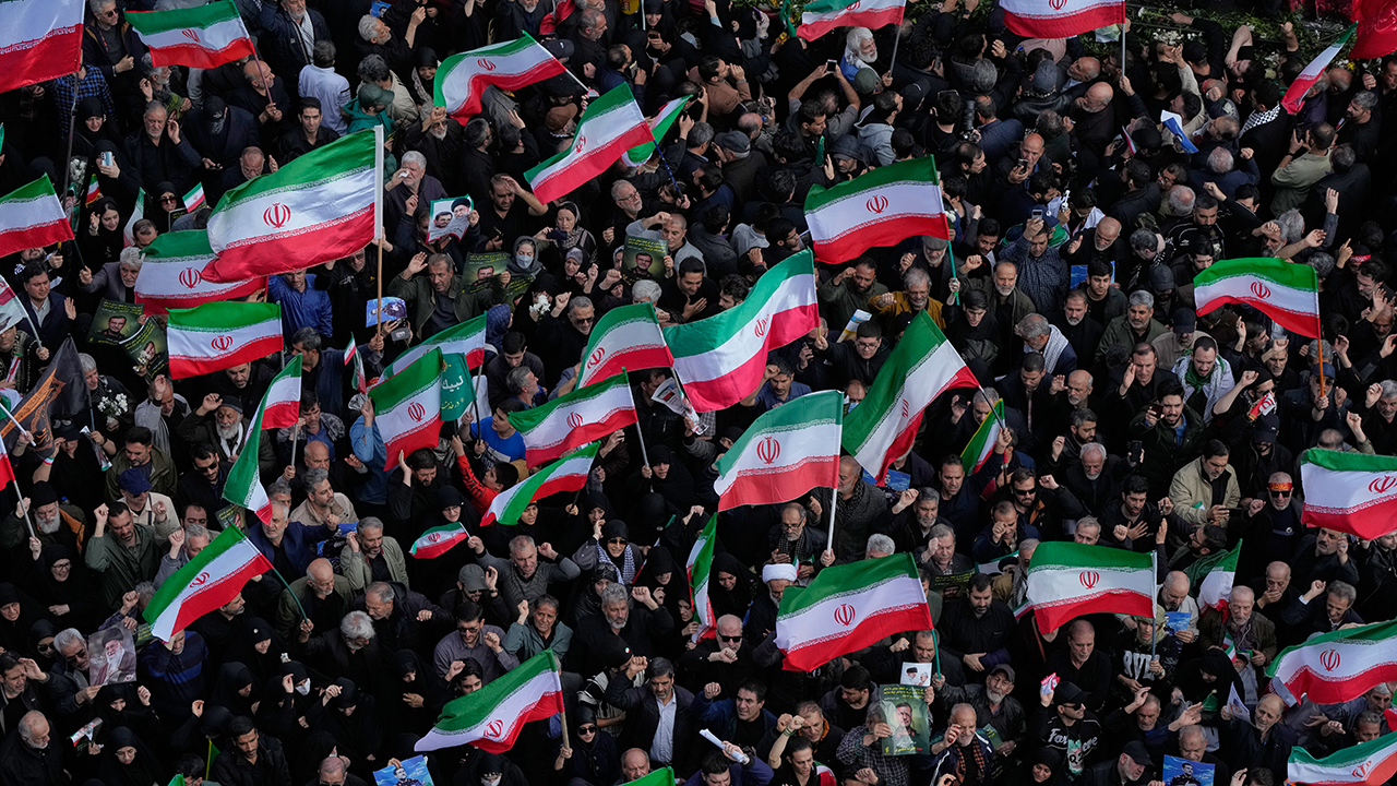 ▲ 1일(현지 시간) 이란 테헤란에서 이스라엘의 공습으로 지난 3월 말 사망한 알리레자 탕시리 이란 혁명수비대(IRGC) 해군 사령관과 다른 희생자들의 장례 행렬에 조문객들이 모여 있다.