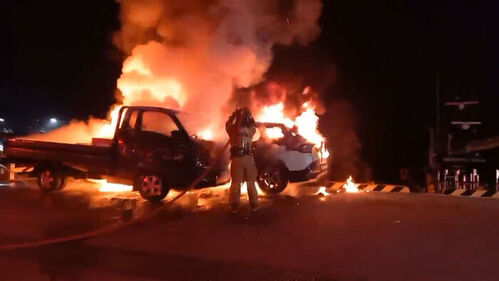 불이 난 SUV는 도로변에 주차된 1t 트럭과 충돌해 두 차량 모두 전소됐습니다.