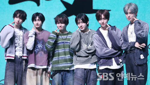 KickFlip pose for photos at the media showcase celebrating their fourth mini album 'My First Kick' at Yes24 Live Hall in Gwangjin-gu, Seoul, on the afternoon of April 6.