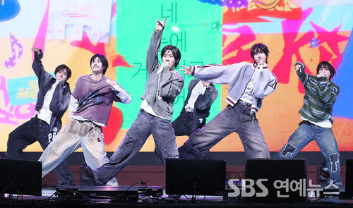 KickFlip perform the title track ‘I Want to Be Impossible to Ignore’ during the media showcase for their fourth mini album ‘My First Kick’ at Yes24 Live Hall in Gwangjin-gu, Seoul, on the afternoon of April 6.