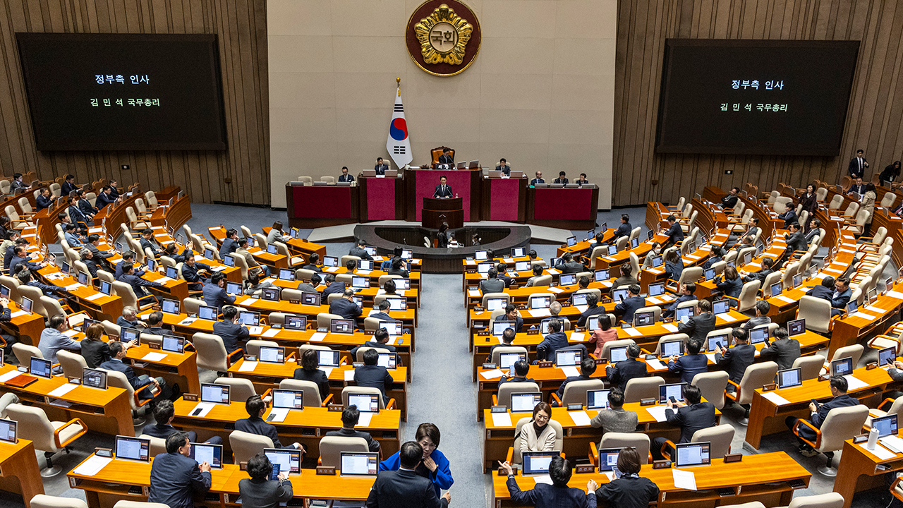 ▲ '전쟁 추경' 국회 본회의 통과, 정부 대표해 인사말 하는 김민석 총리