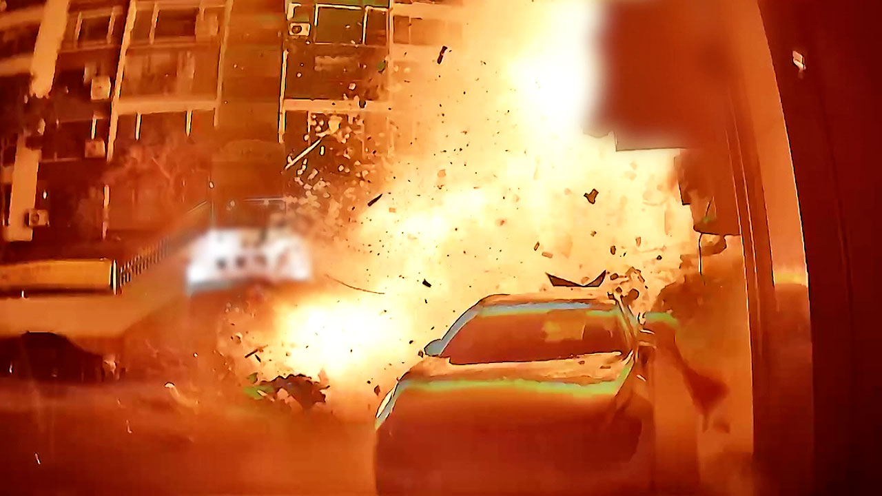 바로 앞에 주차된 차량은 충격으로 찌그러진 채 뒤집어졌고, 맞은편 아파트 창문들도 산산조각 났습니다.