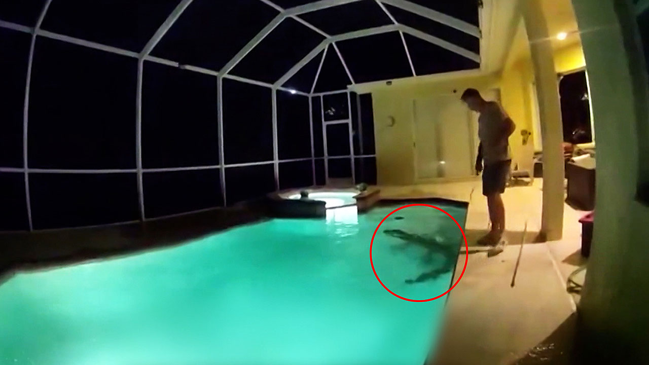 길이 약 2.7m에 달하는 이 악어는 주택 뒤편 수영장에 들어와 마치 자기 집인 듯 헤엄치고 있었다고 하네요.