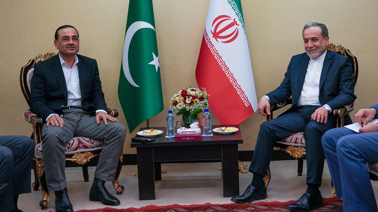▲ 15일(현지 시간) 이란 테헤란에서 회담하는 아바스 아라그치 이란 외무장관(오른쪽)과 아심 무니르 파키스탄군 총사령관